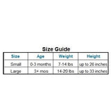Small fits 0-3mos, 7-14 pounds, up to 26 inches